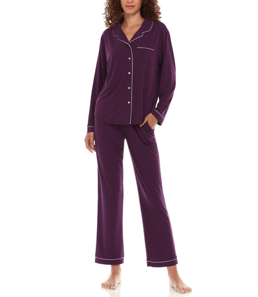 Annie Notch Long PJ Set In Plum - Flora Nikrooz