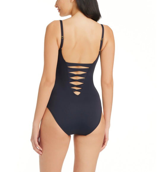 Graphic Measures Plunge Ring Front Swimsuit In Black - BLEU