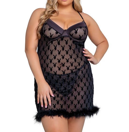 New Romance High Apex Chemise In Black & Rose - Pour Moi