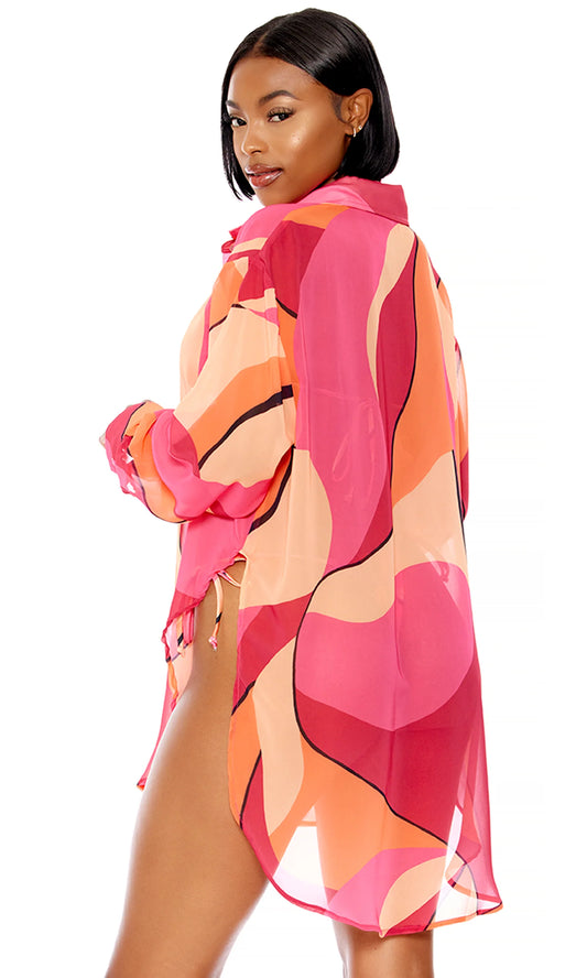 Yucatan Chiffon Button Up Pool Shirt In Fuchsia - Forplay