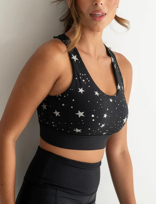 Energy Infinite Double Strap Lightly Padded Convertible Sports Bra in Black Floral - Pour Moi
