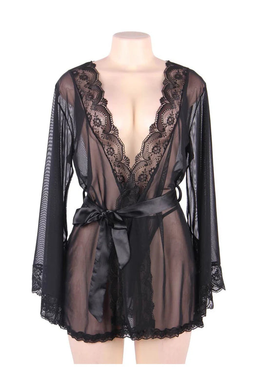 Robe with Matching Thong In Black - Lovely Lies