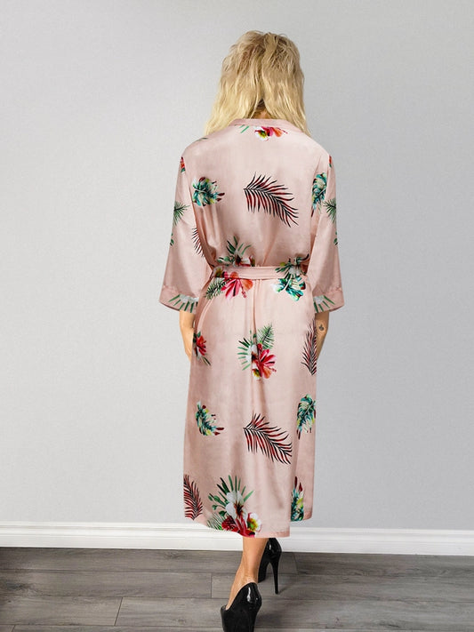 Floral Rose Printed Long Robe In Peach - Lovely Lies