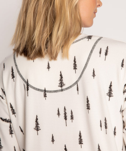 Flannel Crop Top Long PJ Set In Dancing Bows - Kilo Brava