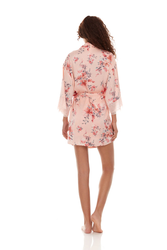 Muse Satin Kimono In Strawberry Fields - Jezebel