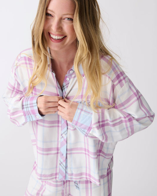 Golden Hour PJ Set In Indigo Plaid - Honeydew Intimates