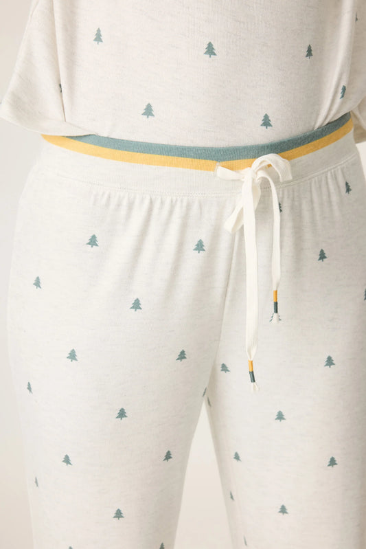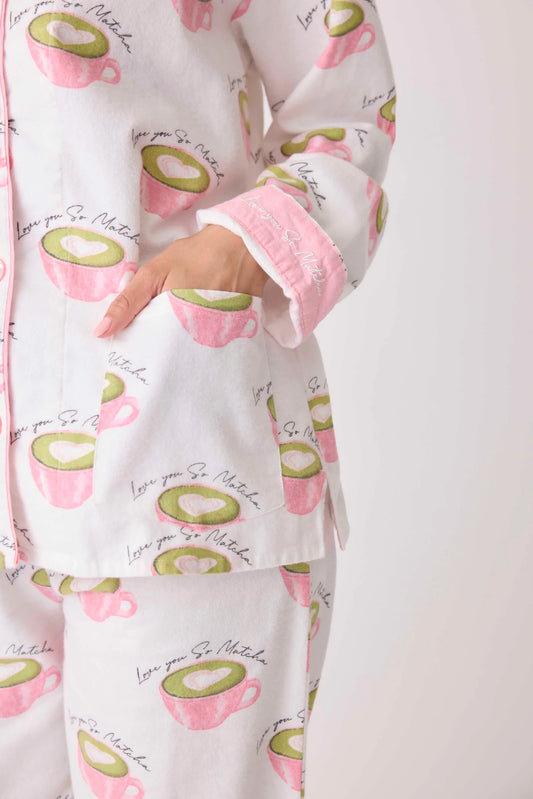Flannels PJ Set Love You So Matcha In White Linen - P.J. Salvage