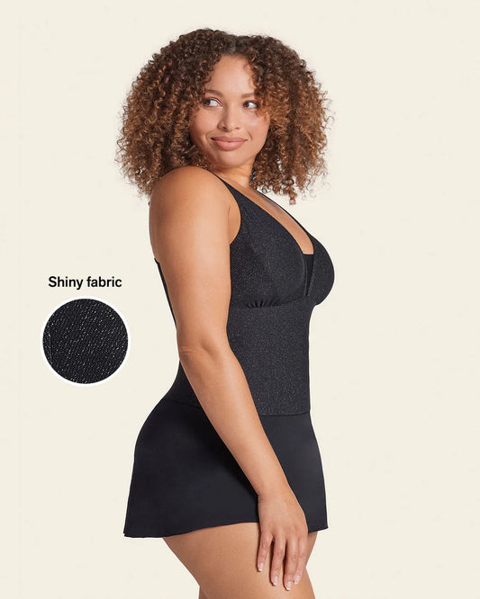 Shiny Slimming Swimsuit Dress In Shiny Black - Leonisa