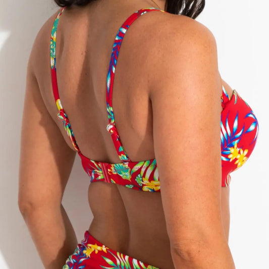 Heatwave Strapless Lightly Padded Bikini Top In Red Floral - Pour Moi