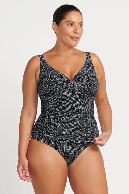 Zig Zag Tankini Top In Black - ArteSands