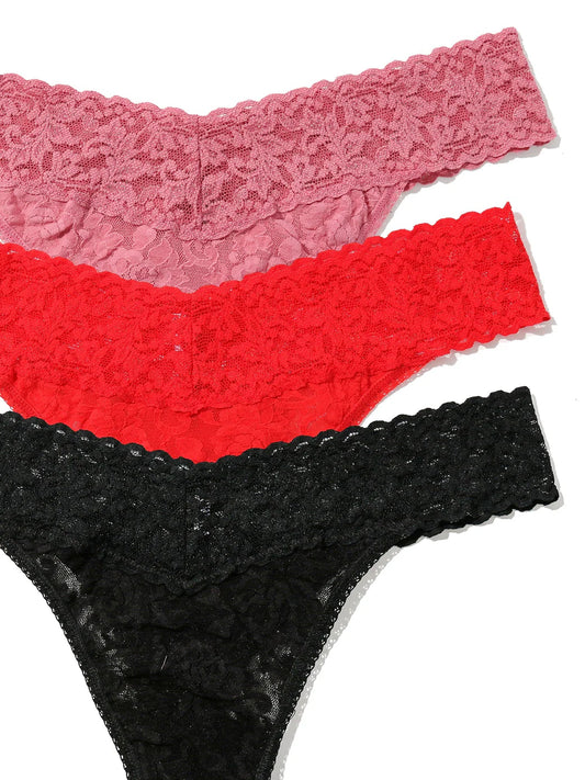 3 Original Rise Thongs In Pink, Red & Black - Hanky Panky