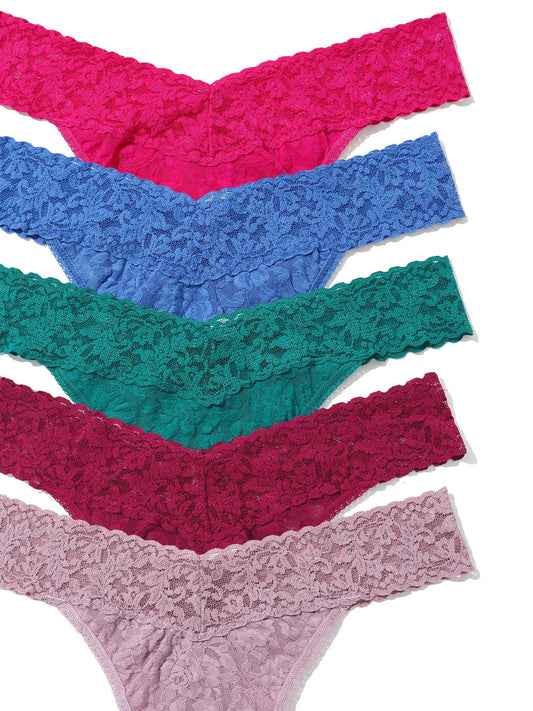 5 Original Rise Thongs In Pink, Blue, Teal, Amethyst & Water Lily - Hanky Panky