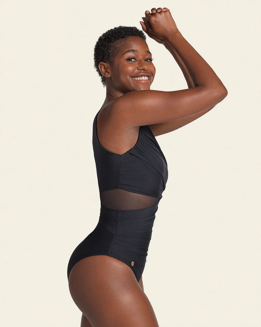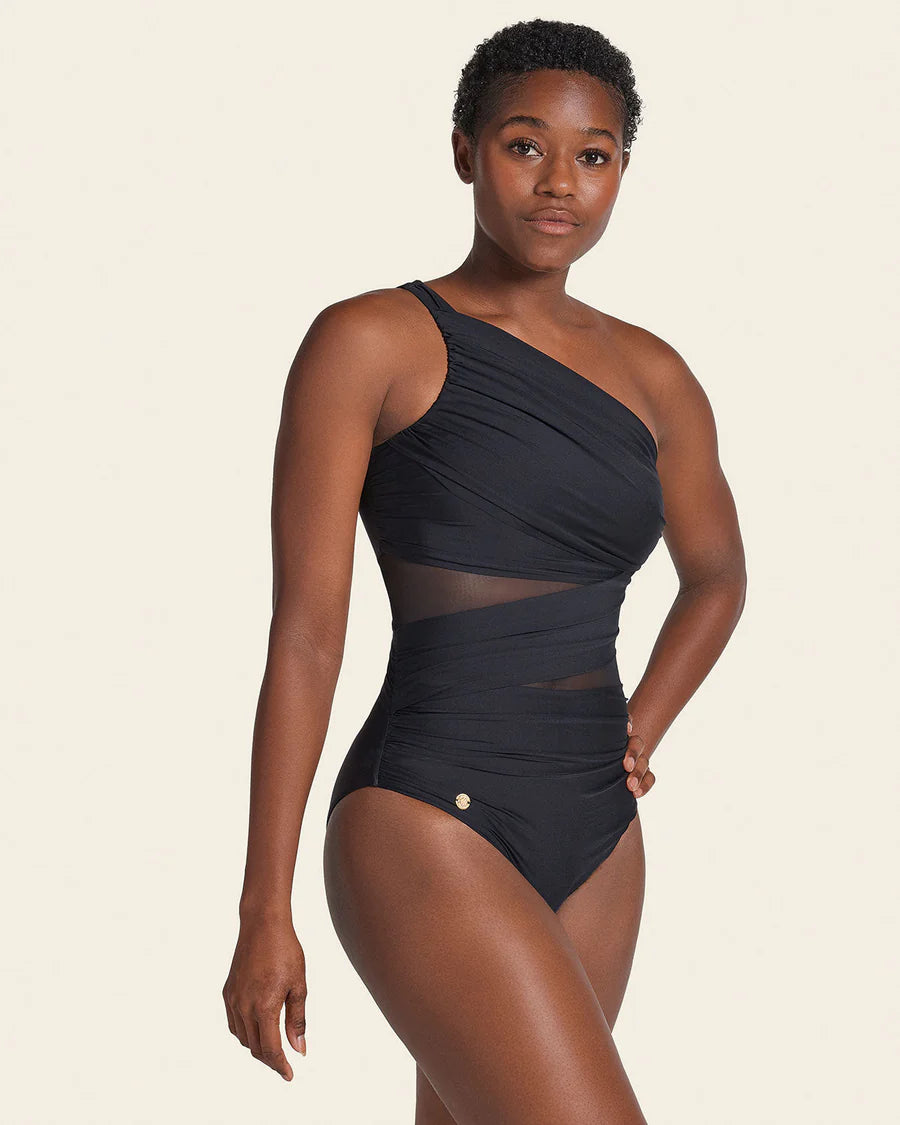 Asymmetrical Slimming Compression Swimsuit In Black - Leonisa