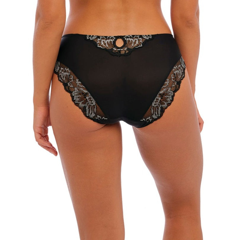 Capturez le confort et l'élégance avec le slip Aubree de Fantasie. Doté d'un tissu noir doux sur le devant et le dos, qui contraste parfaitement avec la luxueuse dentelle extensible bicolore ornant l'arrière de la jambe et la taille. Complété par un détail en trou de serrure sophistiqué à l'arrière. Disponible dans les tailles XS-XXL.