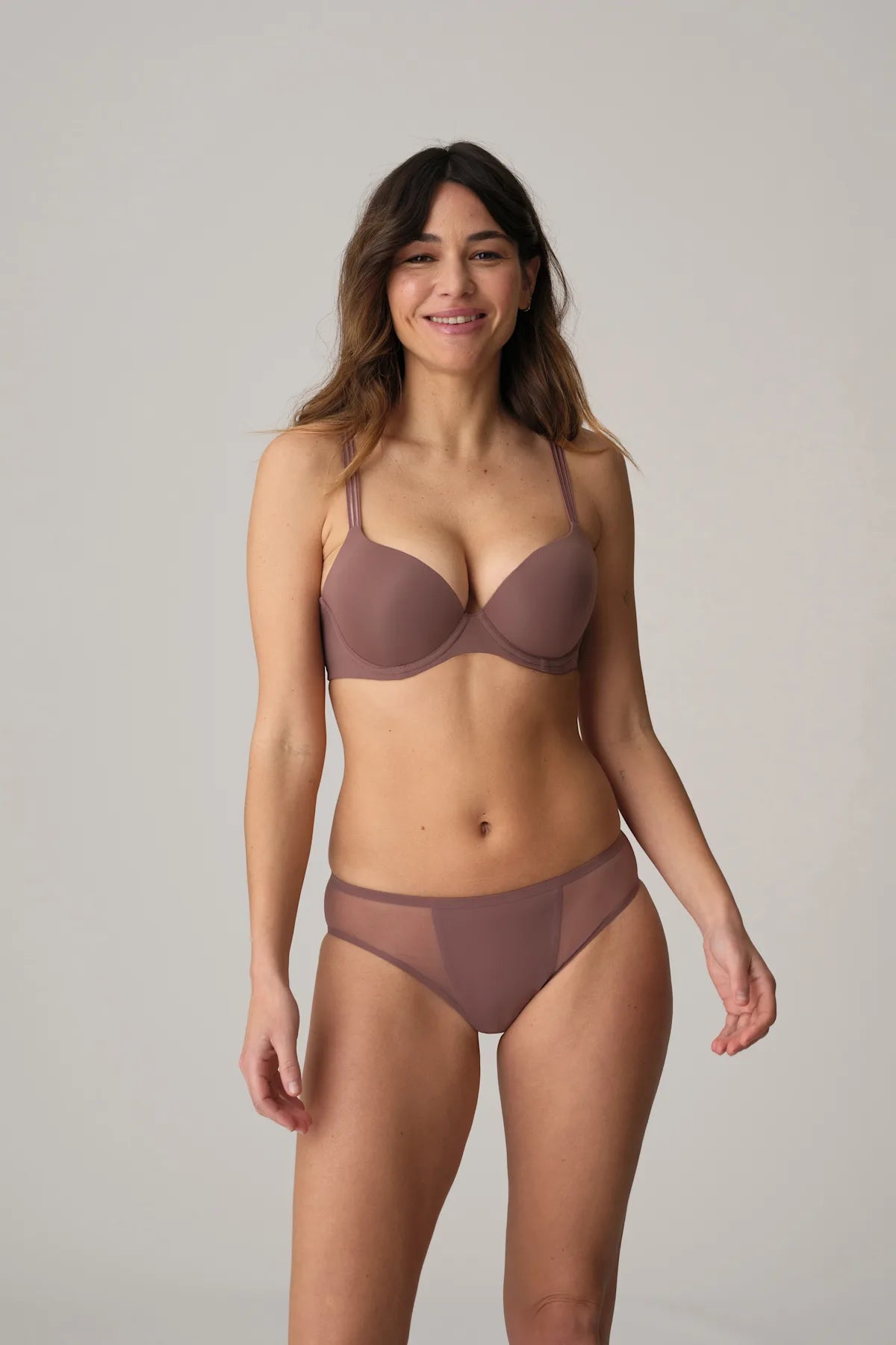 Ce nouveau soutien-gorge rembourré est la quintessence du confort. Il est fabriqué à partir de tissu spacer et recouvert d’une microfibre délicate et douce. Un soutien-gorge indispensable lors des chaudes journées d'été grâce au tissu léger et respirant. Satin Taupe est une nouvelle nuance de taupe. C'est une excellente alternative aux teintes nude traditionnelles !