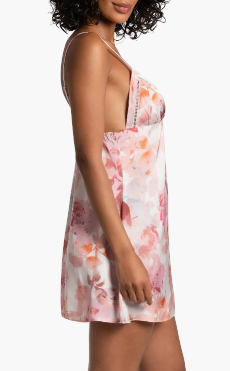 Ladder trim traces the neckline of this satin chemise that brings a bit of romance to bedtime.
