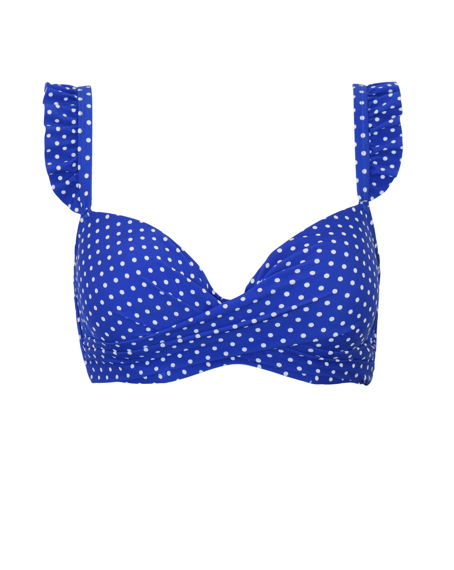 Dive into coastal elegance with the Sicily Lightly Padded Underwired Twist Front Bikini Top, a harmonious blend of style, comfort, and comfort. Featuring built in underwiring, fully adjustable straps and a convenient back clasp, this elegant bikini tops provides you with all the support and customisation you could need from your swimwear. With super soft padded cups and feminine details such as twist front detailing and playful frills on the straps the Sicily bikini top is the perfect piece to add to your swimwear collection. Pair the Sicily Lightly Padded Underwired Twist Front Bikini Top with matching bikini bottoms for a coastal inspired bikini set. Embrace responsible fashion choices with the Sicily Lightly Padded Underwired Twist Front Bikini Top that contains recycled content.