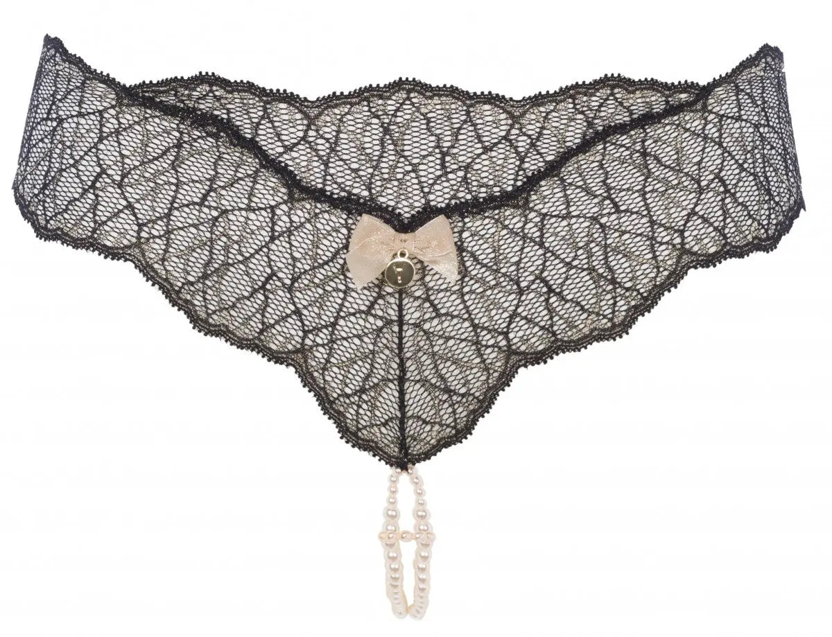 Ressentez la touche stimulante d'un double rang de perles, apposé d'avant en arrière sur le Sydney Double String. Des fils de Lurex doré sont tissés dans la dentelle italienne importée, donnant au Sydney Double Thong un aspect brillant. Rehaussée d'un petit nœud et d'un disque doré sur le devant, comblez vos envies avec cette culotte. Complétez le look avec le soutien-gorge Sydney assorti, vendu séparément. Importé d'Espagne.