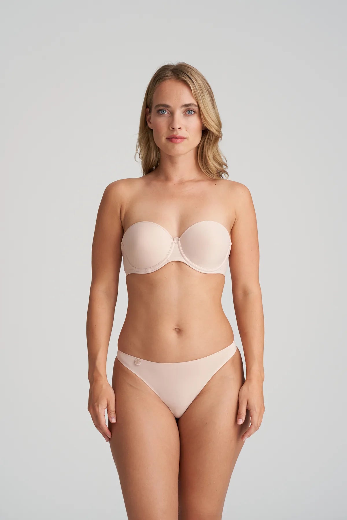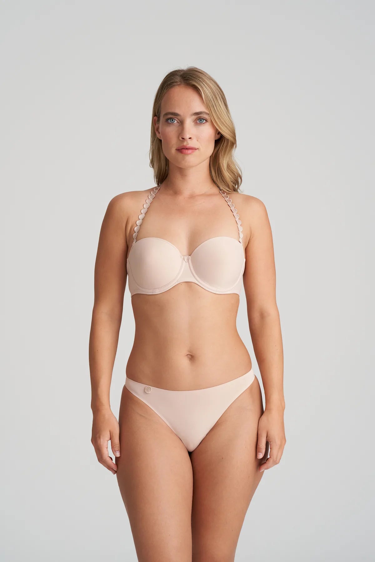 Un soutien-gorge sans bretelles en forme de bandeau. Ce soutien-gorge a un dos droit et une large bande en tissu extensible pour plus de maintien. Portez-le comme un soutien-gorge sans bretelles ou portez les bretelles sur les épaules ou autour du cou.