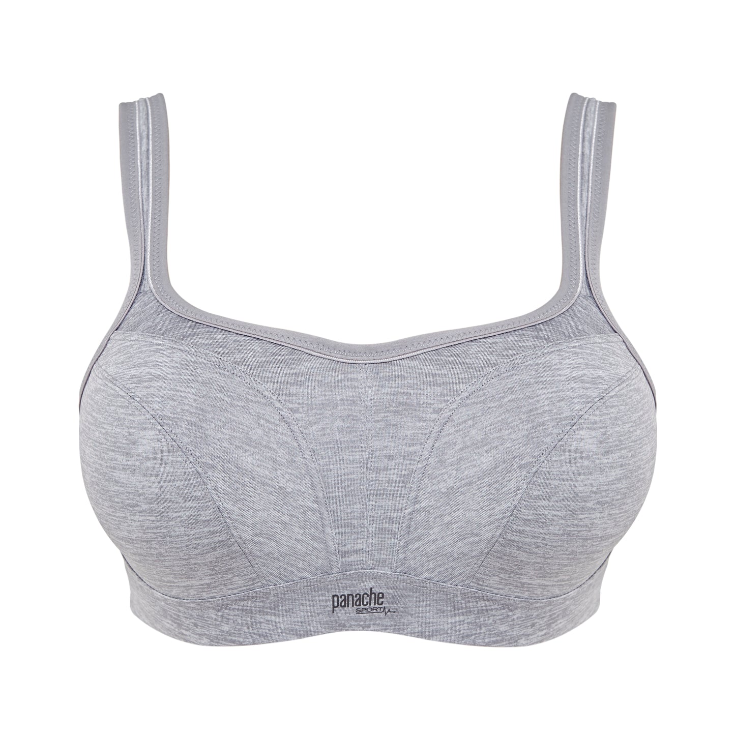 Fashion forward, comfortable and supportive, the Panache Sport Bra in grey marl, providing you with maximum support and a stylish design. The moulded seam free inner cups encapsulate each breast, offering control and give a defined shape whilst the wide cushioned shoulder straps, with racer back ring detail offers additional stability and support, dispersing pressure whilst exercising. The breathable outer performance fabric also offers ventilation, allowing you to keep dry and comfortable whilst working out. Perfect for both high and low impact exercise, it's a definite must have for all you stylish fitness fanatics out there; available in a B to J cup.