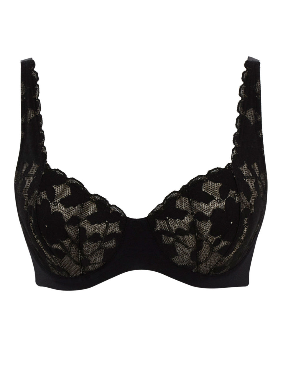 - Lace outer cups are lined to offer support and projection for all bust types