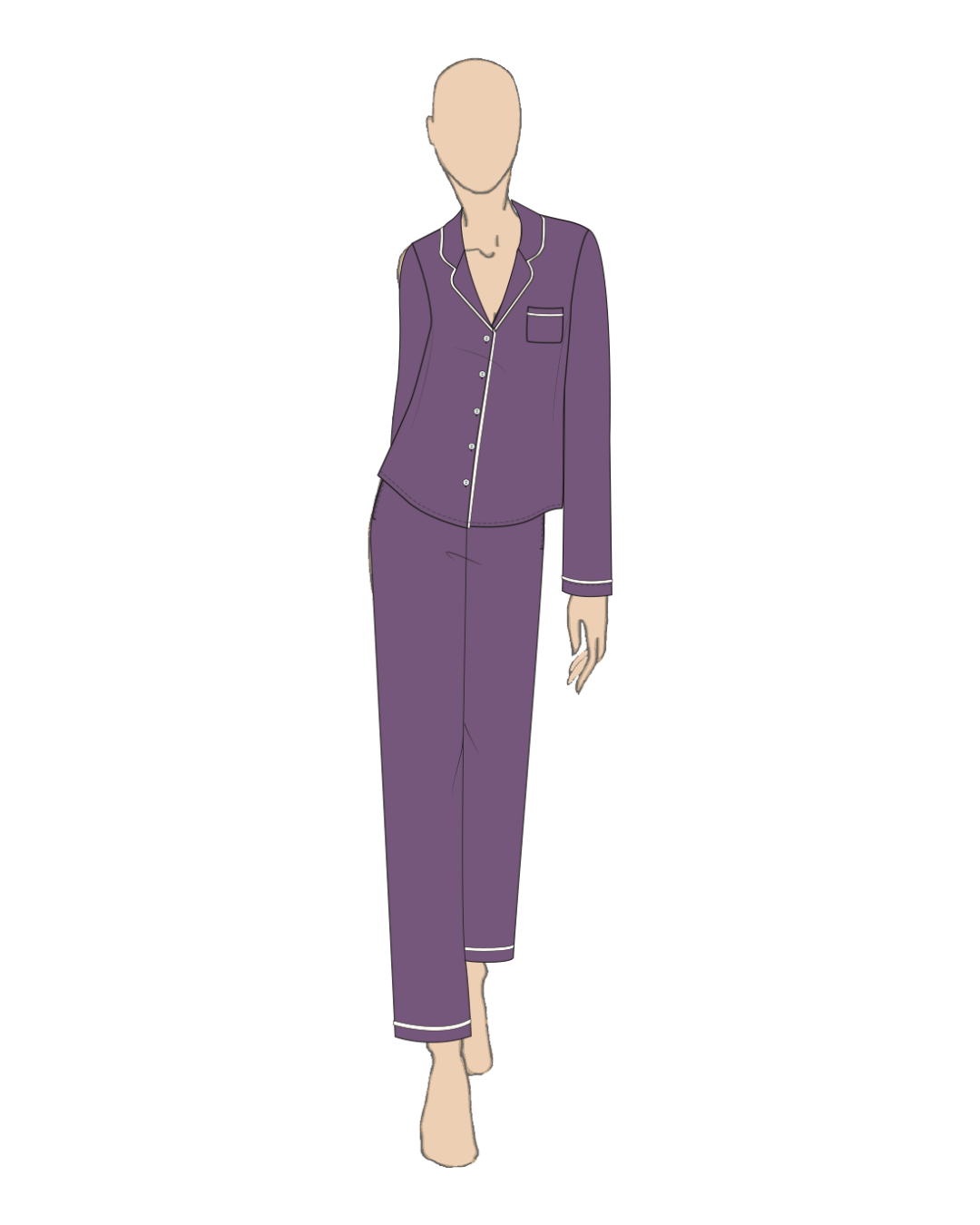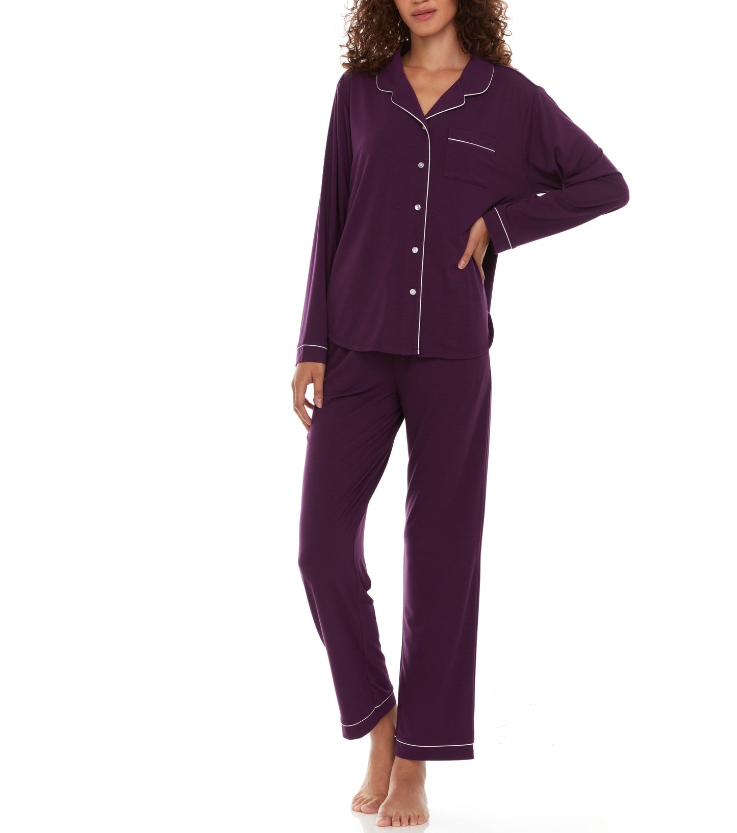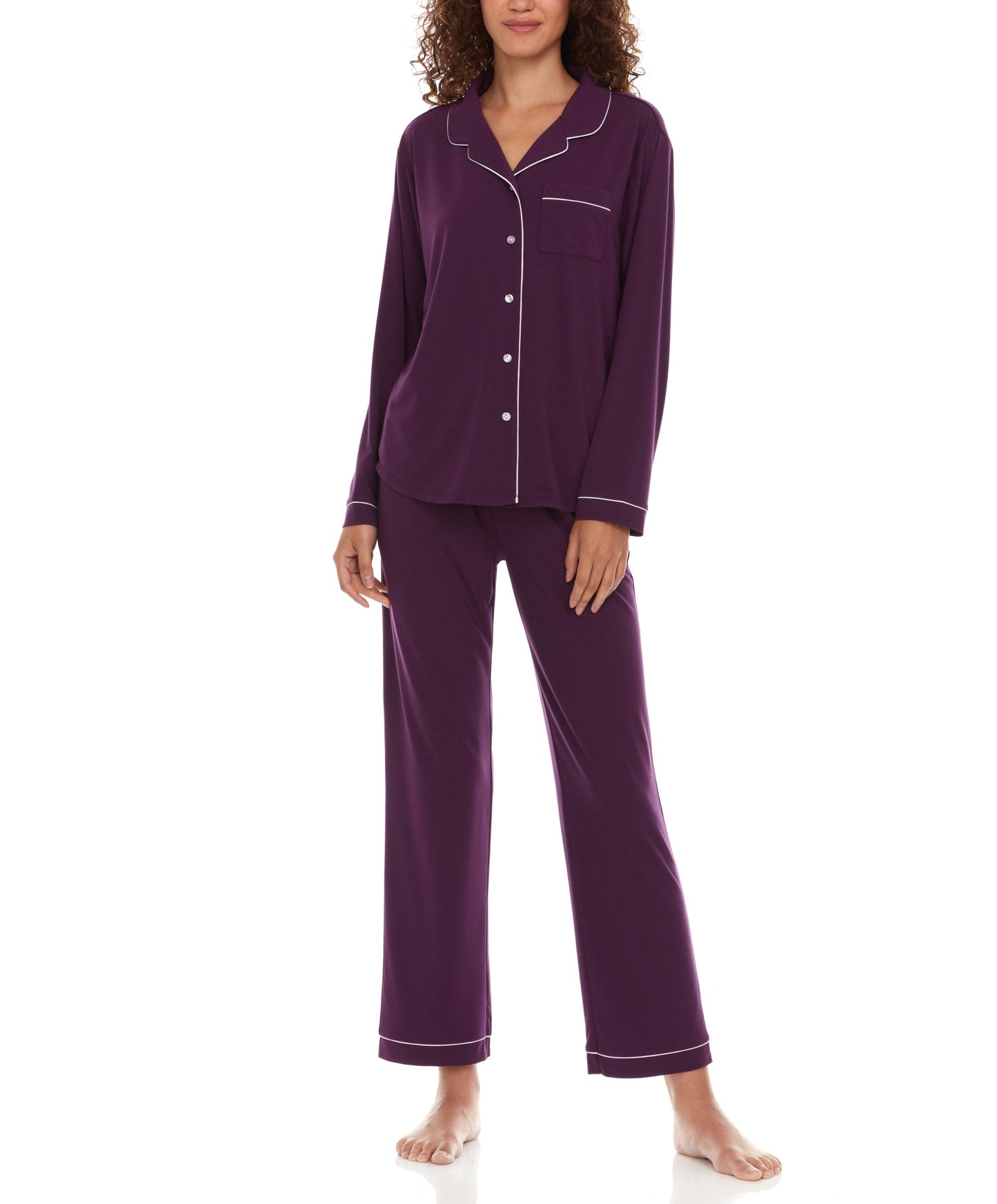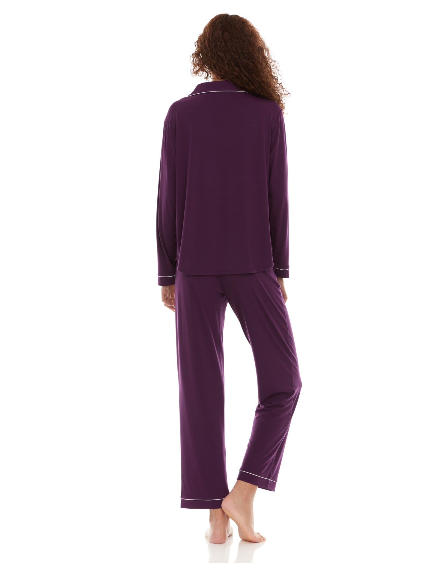 Annie Notch Long PJ Set In Plum - Flora Nikrooz