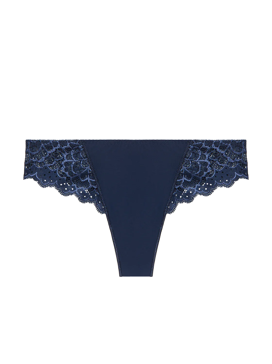 This soft and sensual lacy tanga is as pretty as it is everyday wearable. A front panel of microfiber is accented with divinely beautiful stretch lace with scalloped trim that's as soft as a whisper against the skin.