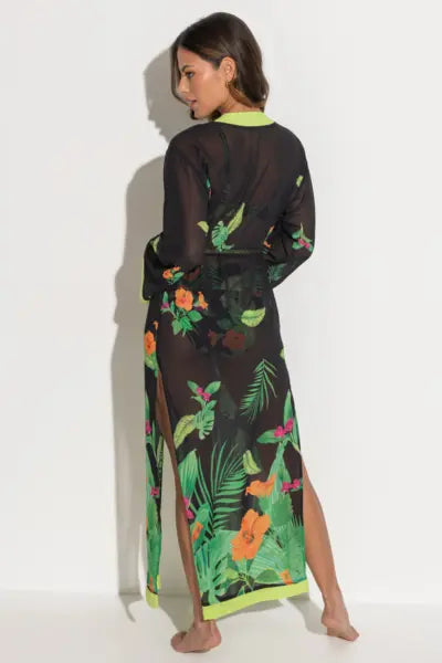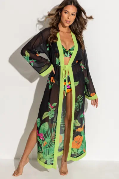 Colour Block Maxi Chiffon Kimono In Tropical - Pour Moi