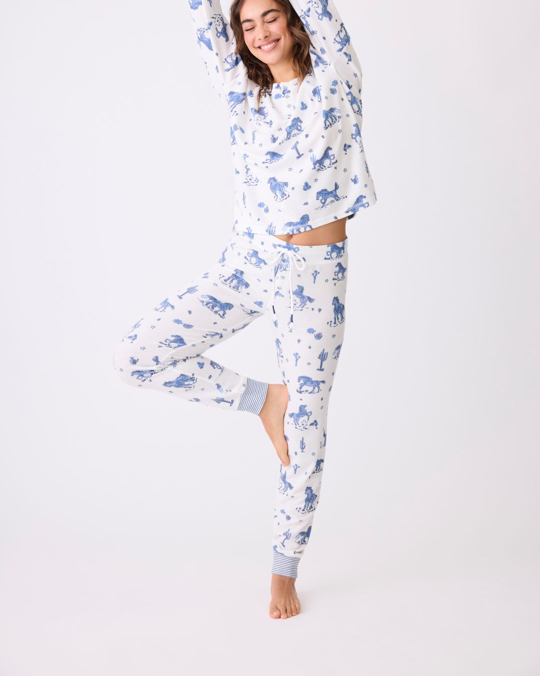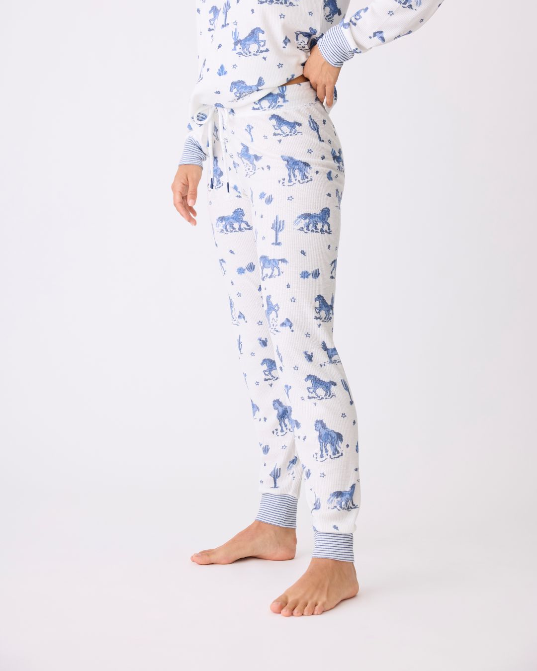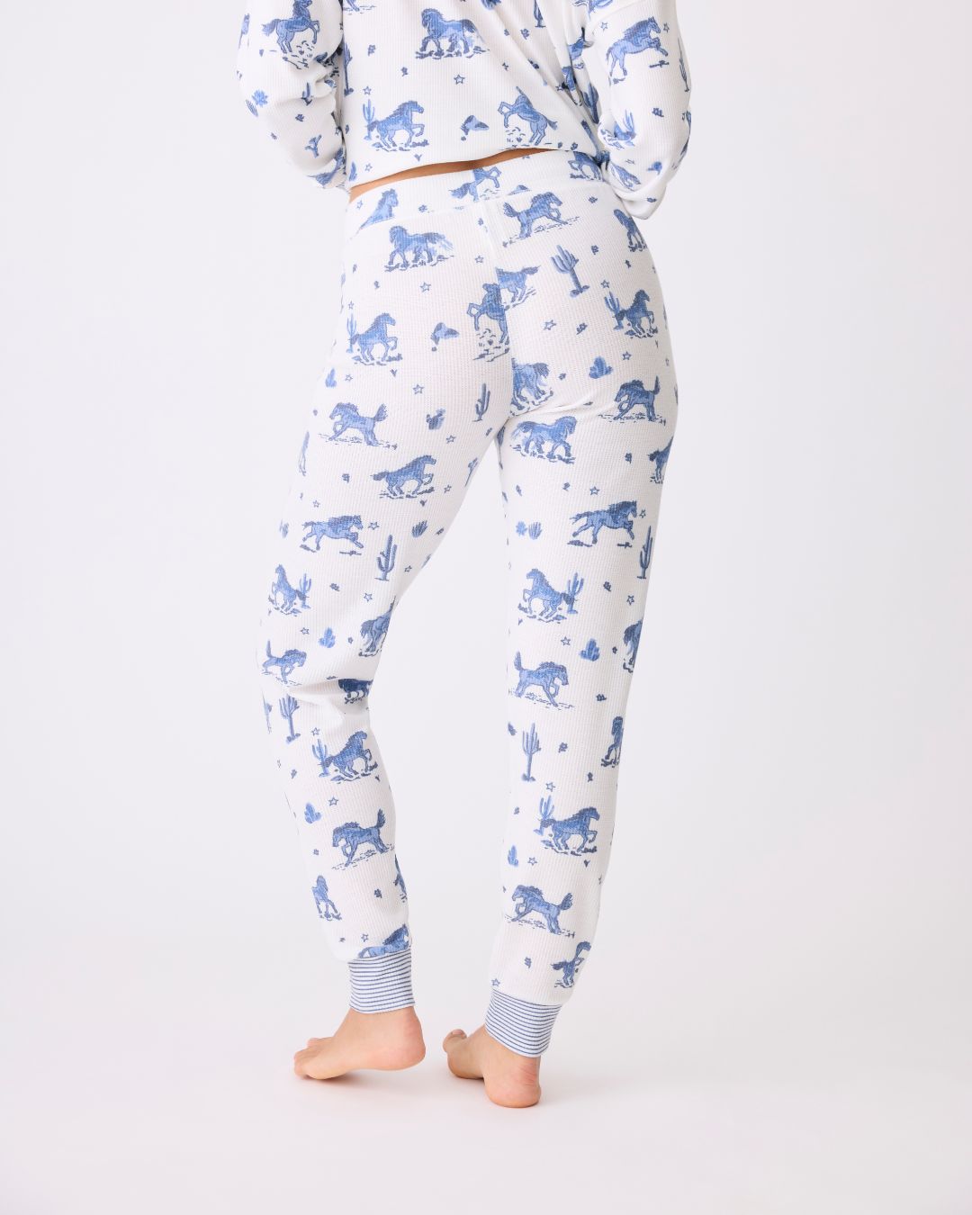 Channel your inner country gal with our horse inspired pint pajama pants. These fun and comfortable jammie pants are perfect for horse lovers and anyone with a touch of country in their heart. The whimsical horse print adds a playful touch, making them ideal for cozy nights in or relaxed mornings.