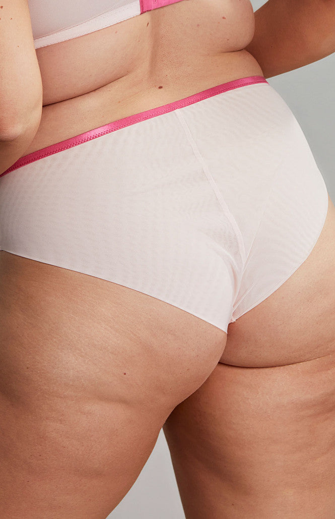 Match your Eden balcony bra with the coordinating high leg brief, featuring pretty flower embroidery inserts and folded stretch mesh back panels for minimal VPL.