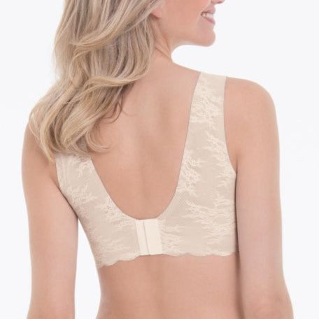 Casual, natural, feminine: the ultra-comfy bralette combines coziness with superior style. Whether as loungewear under a kimono or stylish lingerie under a party dress – the understated bralette with its floral lace look, subtly adorned with a delicate silk band, is sure to brighten any day and sculpt a beautiful figure. The molded cups with their removable foam padding simply exude comfort: the slender padding made from finely perforated foam allows the skin to breathe. And the bra is wonderfully concealing – a plus, especially under tight-fitting summer tops.