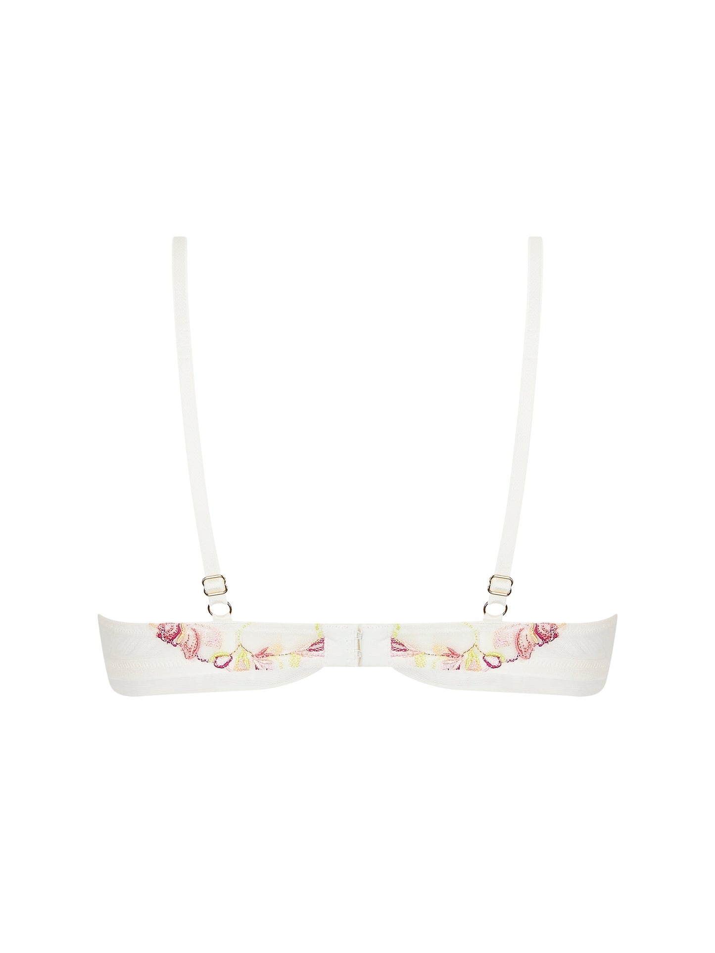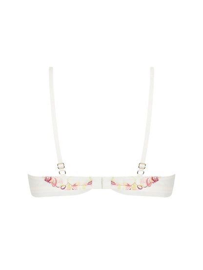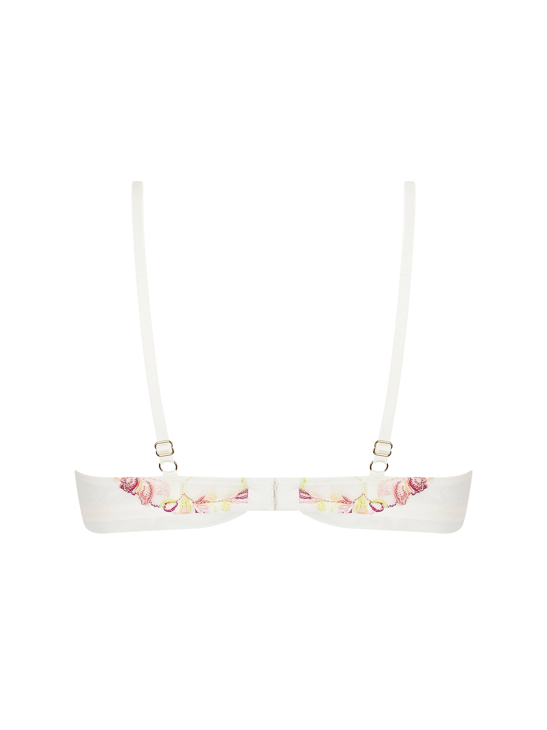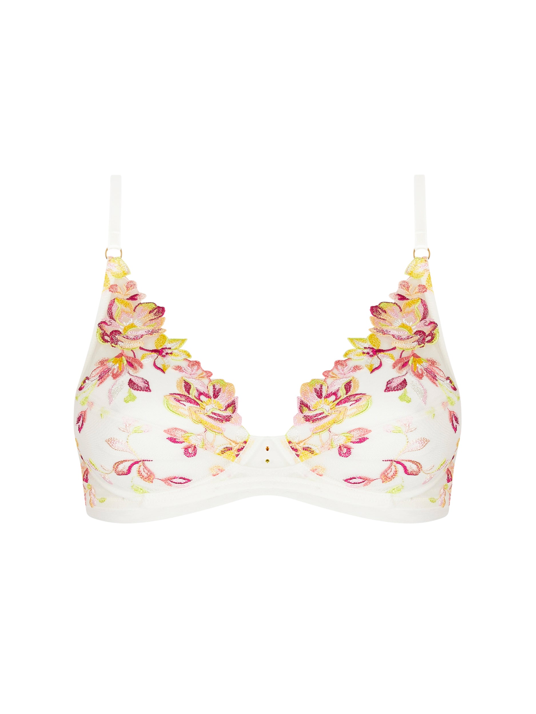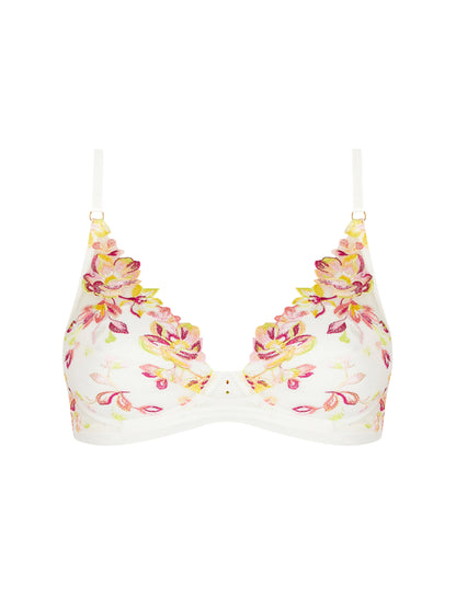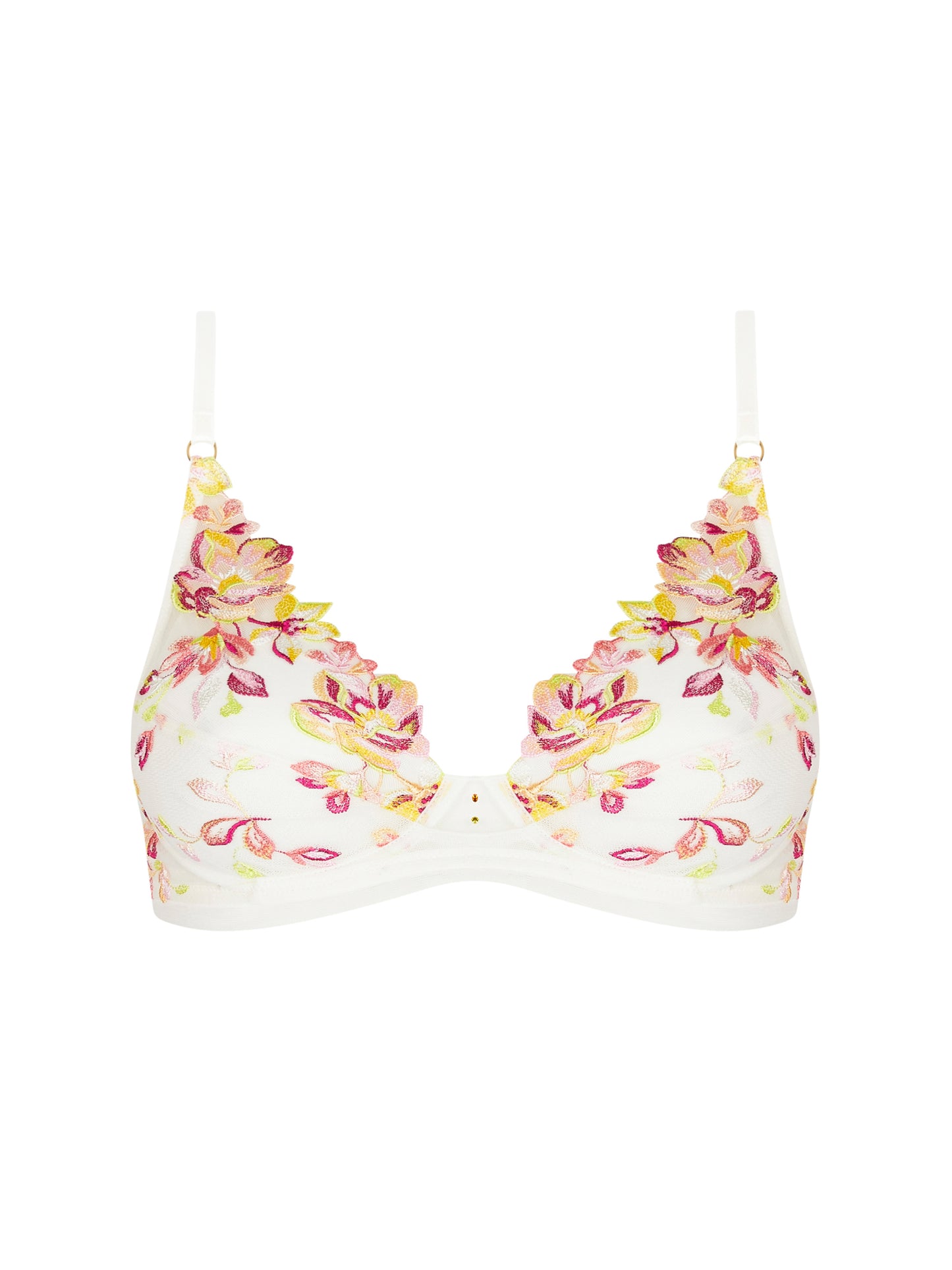 Sculpted to enhance and captivate, this plunge triangle bra features underwire cups designed to offer subtle lift and an alluring neckline. The top and bottom cups are intricately embroidered in vibrant multicolor threads, delivering a refined, artistic flair that sets this piece apart.