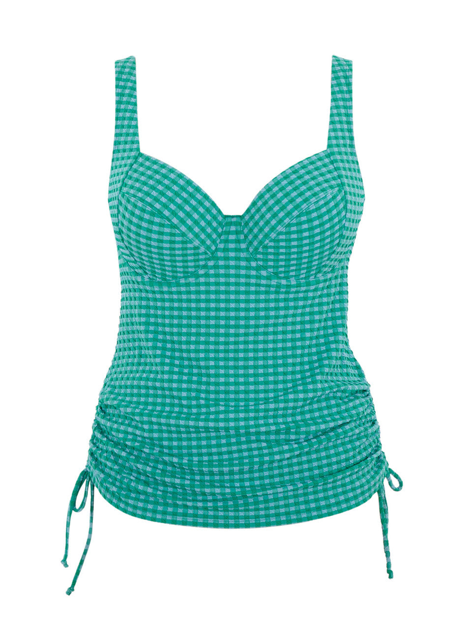 Gingham Iris Full Cup Tankini In Green Gingham - Panache