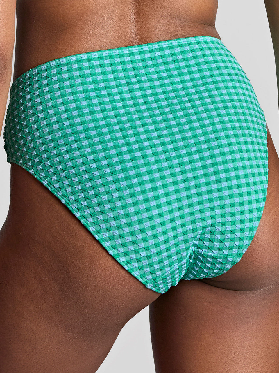 Fresh, feminine, and effortlessly flattering — the Panache Gingham Midi Brief brings a playful twist to classic lingerie. Featuring a charming green gingham print and a mid-rise cut, these briefs offer full back coverage with a smooth, comfortable fit.