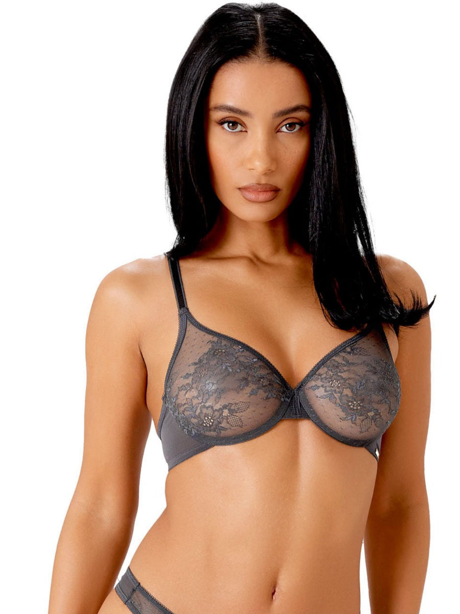Glossies Lace Sheer Bra In Charcoal - Gossard