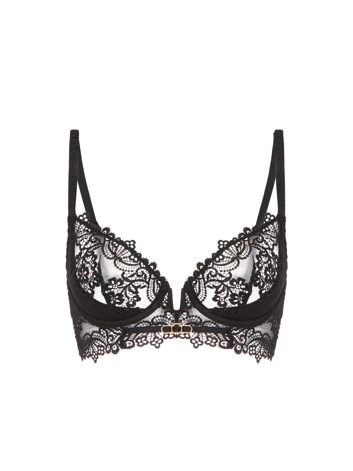 Where structure meets artistry. The Idole Full Underwire Plunge is crafted in Italian sheer tulle with decadent embroidery, shaped by a dramatic V neckline that draws the eye. Sculpting side panels enhance the silhouette with elegant precision, creating lift and definition that feels both intentional and effortless. Limited edition.