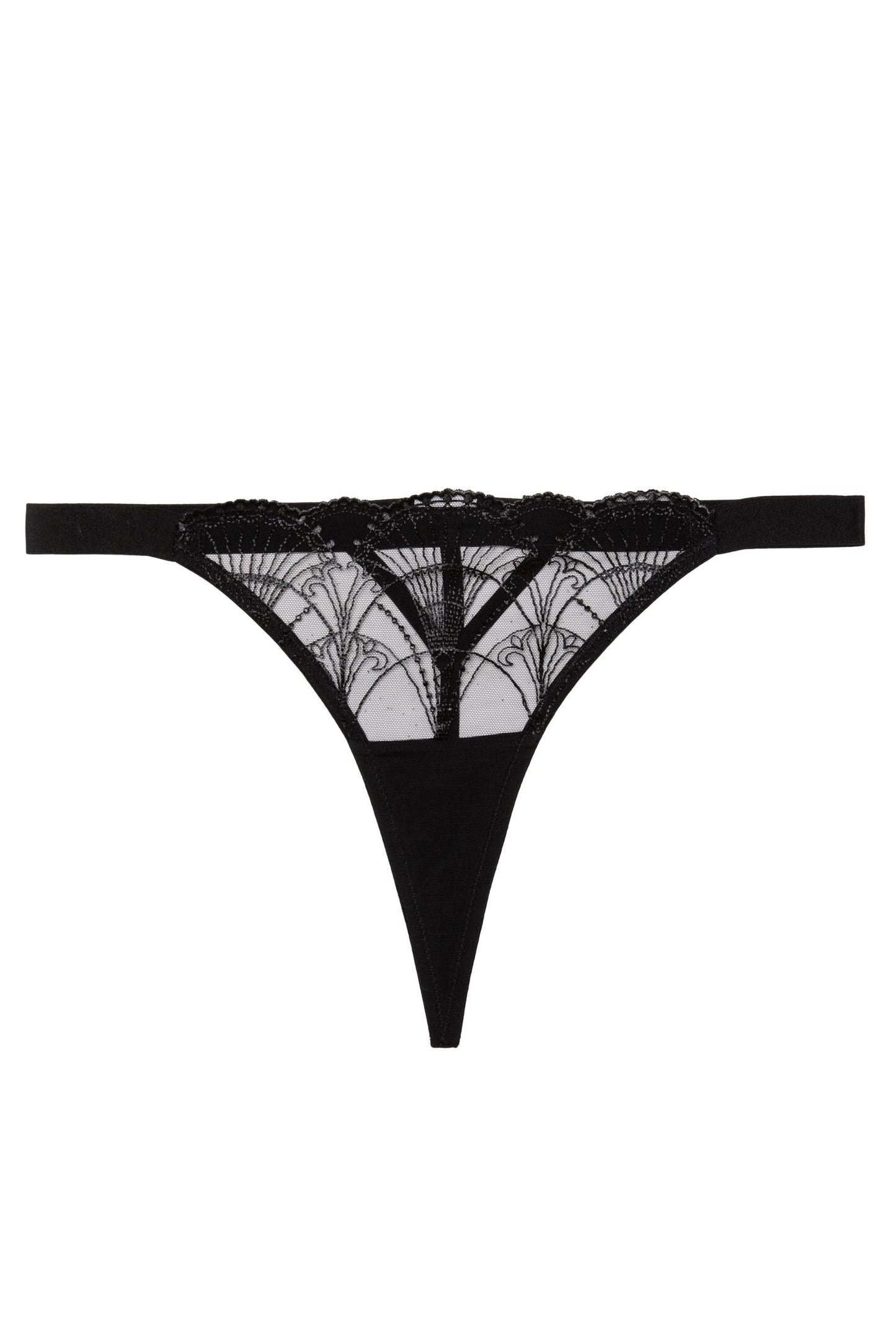 Pippa Deco Embroidered Caged Thong In Black - Wolf & Whistle