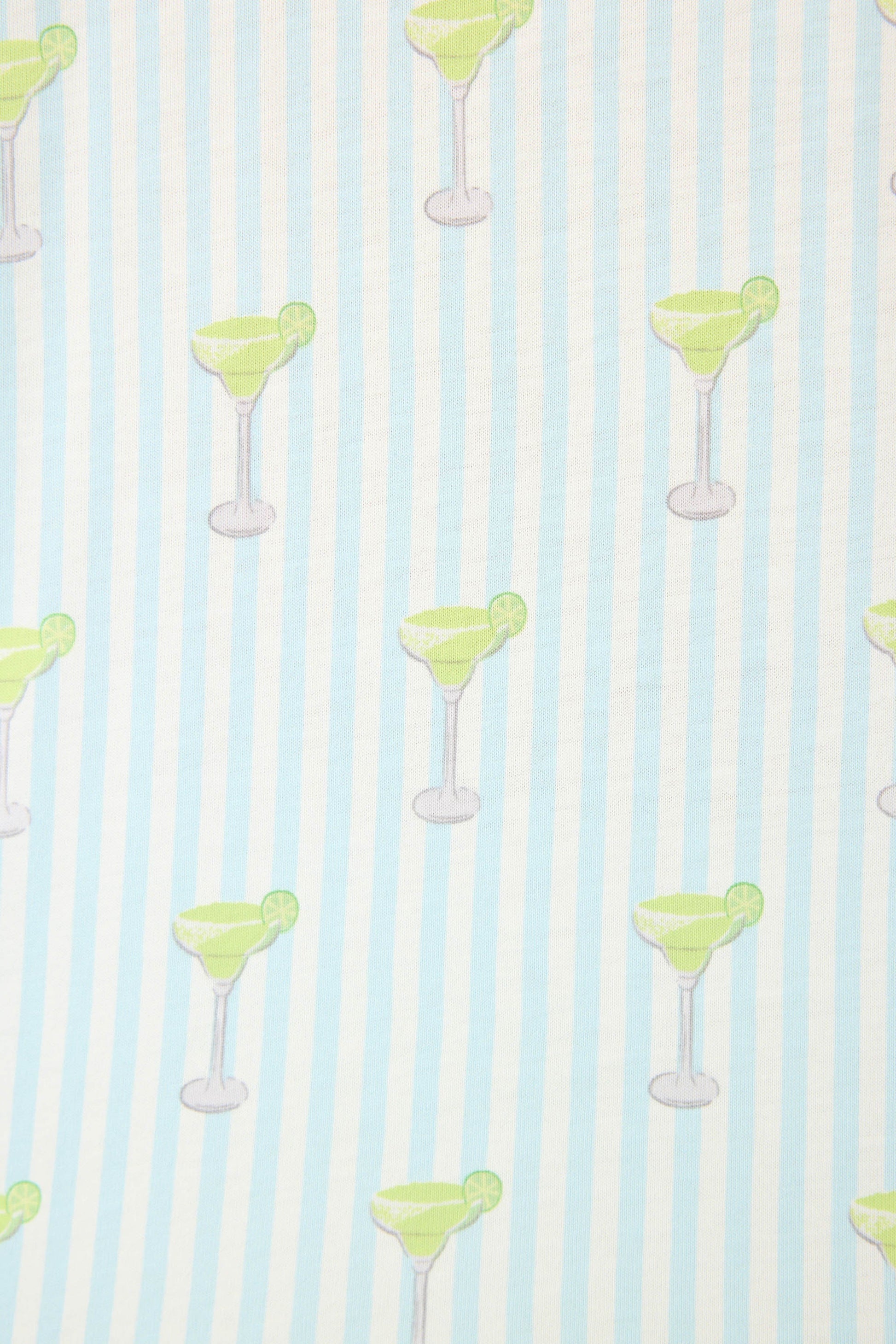 Cheers to staying in. This blue-and-white striped pajama set pairs playful margarita motifs with crisp stripes for a cocktail-inspired spin on classic sleepwear. Crafted from cotton-modal jersey, the button-front shirt and straight-leg pants are finished with contrast piping and polka-dot cuffs for a bold, playful contrast.