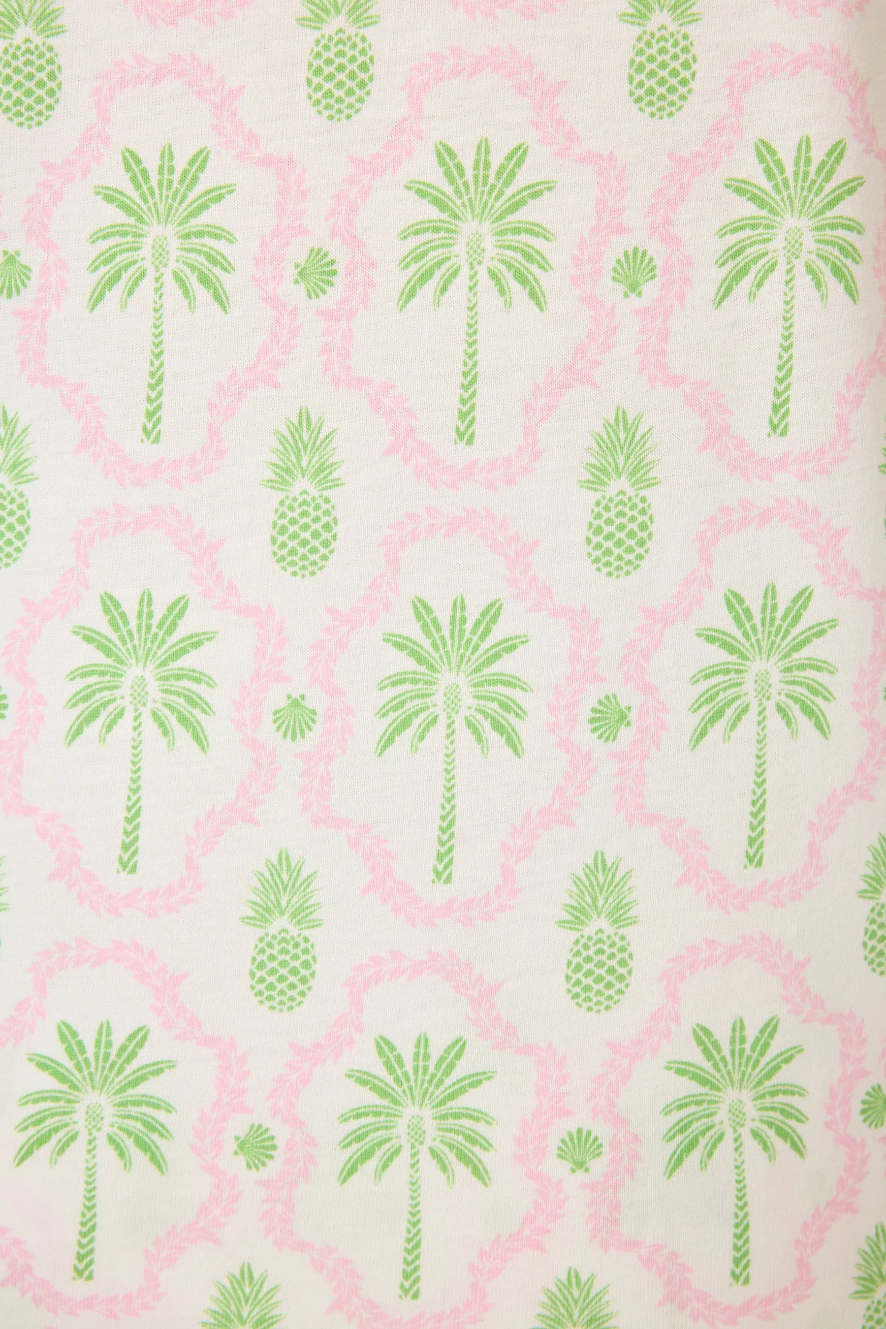 Vacation mode, activated. These ivory pajama shorts feature a cheerful palm tree and pineapple print that captures an easy, getaway-ready mood. Crafted from soft cotton-modal jersey, they’re finished with a faux button fly and scalloped picot hems for a breezy, relaxed feel.