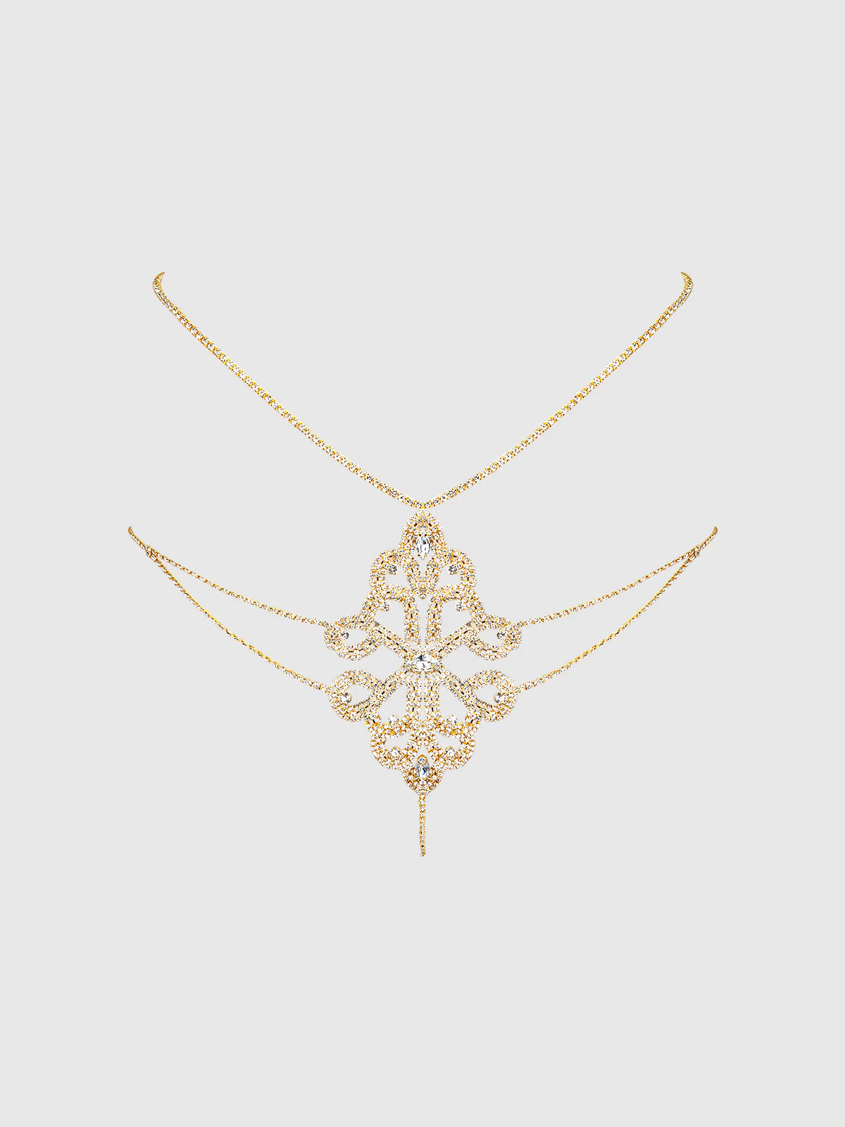 This Rhinestone Swirl Knot Panty frames your hips like art, with sparkling straps and a central swirl that draws the eyes to your sweetest spot. Multi-size stones decorate the centerpiece for a sculptured design, while slinky straps are lustrously layered on your curves.