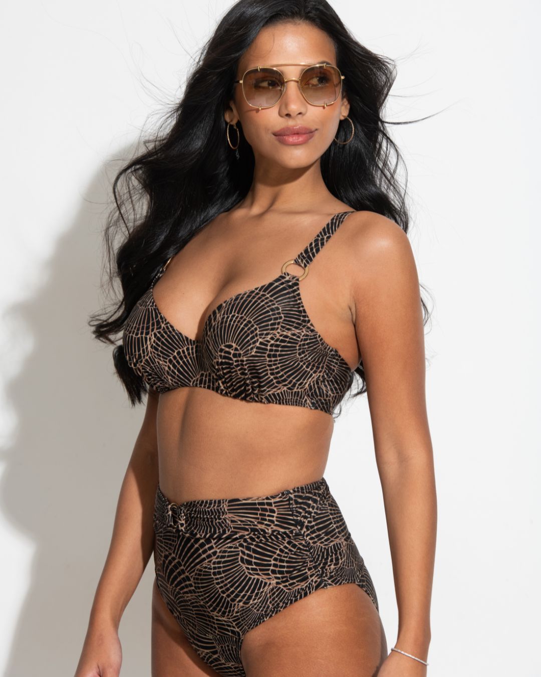 Enjoy a stylish and secure swimwear look with the Samoa Non-Padded Underwired Bikini Top. Featuring an underwired structure and a flattering plunge shape, this bikini top offers a natural, lifted look without padding. The pretty gathered cups and gold hardware details create a striking overall look, while the fully adjustable straps and back clasp fastening provide a secure and comfortable fit for all day lounging. This DD+ cup sized bikini top makes it easy to find your perfect size and fit. Pair with matching swimwear from the Samoa collection for a must-have swimwear look.